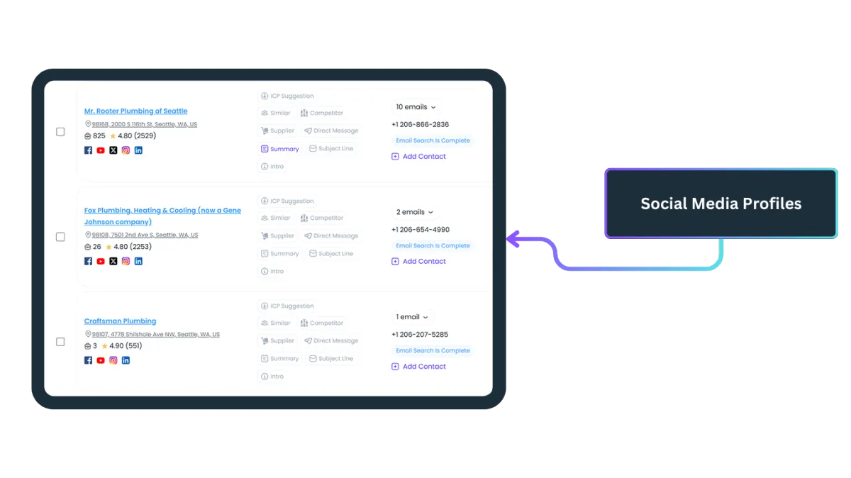 Search, click, and display the verified contact info of decision-makers in seconds.