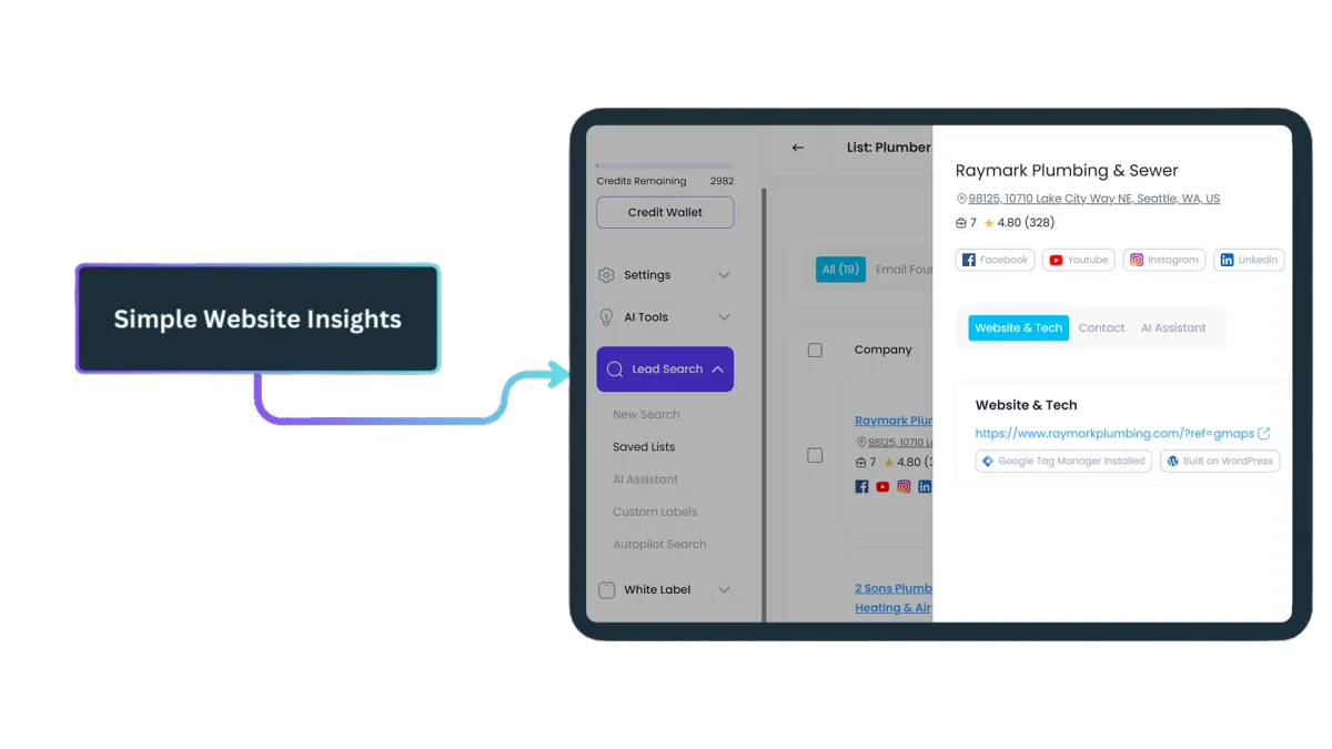 Instantly conduct a website analytics audit on your ideal prospect's full online presence.